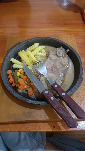 Pan Sheared Beef Steak 30rb dengan harga diskon 15% jadi 25,5rb dapat daging lokal tanpa tepung, sayuran, dan kentang goreng. Ada 3 pilihan sauce BBQ, mushroom, dan spicy. Ini sangat murah. Untuk rasa dagingnya standar lokal lah ya, ga keras dan ga empuk. Untuk pelengkap kentang goreng dan sayurannya sudah oke. Hanya saja mushroom sauce terlalu encer, jadi rasanya kurang creamy.