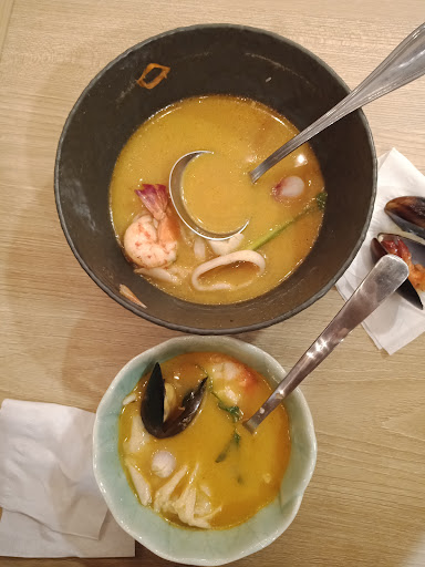 A new thai resto in town. The staffs were friendly and so informative (thank you! Keep it up!) They offer wide variety of thai food, but I think their main product is tom yum (their tagline: the best tom yum in town), so I tried tom yum seafood (68 K exc taxes). One portion is enough for 2 people, but this is a la carte (without any rice, sold separately). The tom yum is good! I like it! Seafoods not too few, the taste is suitable for me. Recommended!