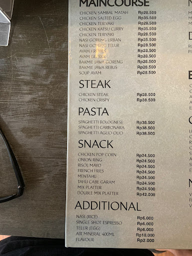 Nilai Positive: Tersedia area non smoking AC, Smoking AC Indoor dan juga smoking outdoor. Jumlah table cukup banyak Area parking cukup luas Kami pesan: Ice Cafe latte Caramel less sweet dan untuk product sesuai ekspektasi, rasa kopi ok, tingkat kemanisan pas. Es Kopi Urban, ini enak tapi karena sudah dibuat jadi tidak bisa di adjust kemanisannya. Agak kemanisan. Tahu Cabe Garam, ini ENAK! Rekomended. Pesan karena di rekomendasikan oleh barista nya. Terima kasih untuk rekomendasinya. Cuma untuk porsi cukup kecil. Mentahu, Mendoan dan Tahu. Untuk mendoannya kurang fresh di tempe nya. Tapi untuk tahu isi sayurnya cukup ok.