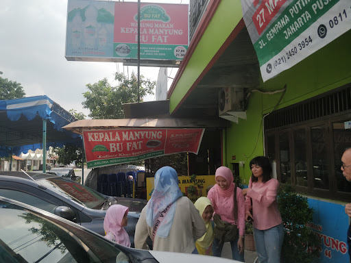 Read moreDari nama restonya, jelas resto ini andalannya adalah masakan kepala ikan yaitu ikan manyung. bagi yang belum terbiasa dengan nama manyung, ikan ini punya nama lain yaitu ikan jambal roti yang badannya sering dibuat ikan asin jambal roti yang paling enak dimakan dengan sambel dadak dan sayur asem. masakan kepala ikan disini dimasak dengan ala mangut seperti mangut lele dan lain lain. sebelum dimasak, kepala manyung diasap dulu untuk menghilangkan bau amis/anyir yang cukup kuat dari ikan ini, aroma asap terasa kuat di masakan ini. saya tidak merekomendasikan resto ini untuk orang yang tidak suka pedas karena kepedasan masakan disini saya beri level 8 dari 10, masih kalah pedas dengan masakan Manado, Gorontalo dan Lombok. tapi bagi yang suka pedas, disinilah tempatnya untuk makan siang heboh, sudah pedas menunya, restonya panas (tanpa AC) dan minum teh tawar panas. waaaahh dijamin ganti baju habis makan disini krn keringete gemrobyos alias basah kuyup dengan keringat. oh iya mangut disini dikasih sedikit pete (mungkin salah satu metode menghilangkan bau anyir diganti bau pete hehehe). selain kepala (oh iya ada beberapa size kepala ikan disini, kecil, sedang dan besar) bisa memesan menu lain yaitu badan ikan manyung, cumi cumi bumbu hitam dan kalo tidak suka dgn seafood bisa pesan ayam goreng, dan kalo ada di antara teman satu rombongan yang sama sekali gak bisa makan seafood dan bau amis seafood, jangan khawatir, ada resto di sebelah resto ini (satu group) yang menyediakan menu non seafood. aman. saya beri 5 bintang untuk rasa dan 3 bintang untuk tempat. walaupun resto ini kurang nyaman tetapi pelanggannya datang dari berbagai kalangan. dari gubernur sampai menteri pernah makan disini. kalo ke semarang, sempatkan makan siang disini, sebaiknya jgn makan malam, karena biasanya habis maghrib sudah bnyk yang habis menunya. kalaupun terlewat, kepala manyung Bu Fat sekarang ada di Bandara A Yani yang baru, bisa dibungkus dan dibawa pulang, sama enaknya tapi beda sensasi pedes tur panas....