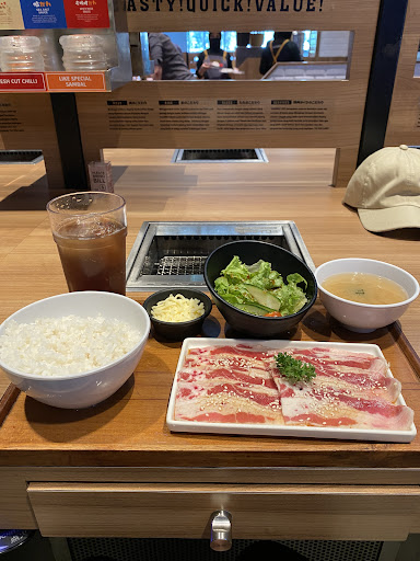 Read moreIndonesian: Lanjut makan malam di Yakiniku yang belum ada di Sby ini hoho. Di sini menyajikan berbagai macam menu yakiniku tapi bukan all you can eat yaa.. Banyak paket2an gitu. Paketnya lumayan2, udah dpt nasi, daging sama salad. Trus ada tempat kayak individual barbecue gitu, jadi bisa bakar2 sendiri ga perlu rebutan ahahahahahaha.. Menu yang kita coba: Karubi Set 100g (65k) Paket ini berisi 6 slice daging dengan appetizer kimchi/salad, nasi dan miso soup. Ini dagingnya cukup tebel ya gaes, rekomendasi cara makannya: Campur dengan saus stamina garlic dicampur dengan original soy sauce sampai agak meresap. Bakar sampai medium hahahahha Jadi dagingnya bisa empuk dan sausnya meresap sampai daging2nya. Kalo bakarnya pas, ini uenak sih!! Untuk miso soupnya ok, cuma menurutku wangi seaweednya kurang dapet. Saladnya sayurannya fresh, tapi udah agak di potong kecil2 gitu hohoho