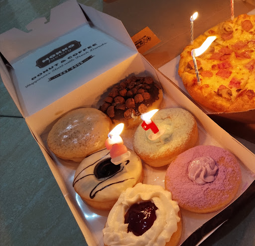 Read moreMohon maaf kalau masalah IBU itu sensitif, Saya beli donat kebetulan lg bulan puasa, mama saya sudah agak tua dan numpang duduk sebntar. Padahal saya lagi beli dan mau bayar tapi IBU saya diusir bahkan sama yg pakai baju mokko itu sndiri. Saya sering banget beli untuk anak dll tapi mulai skrng maaf gaakan beli lagi krna pelayannya sudah...