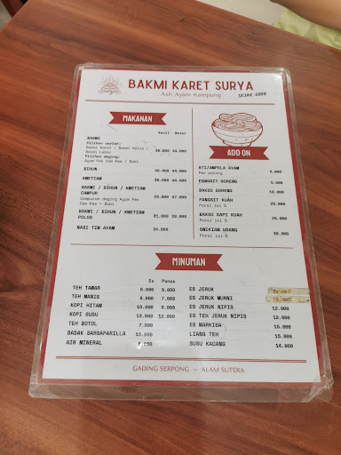 Read moreTerletak di ruko crystal 8. Aku pesen "bakmi karet" ada dua size, regular dan large, aku pesen yg large seharga 41.000 dan boleh pilih topping mau ayam kampung rebus suir atau 🅱️🆎 I kecap cincang. Boleh di mix juga. Porsi "large"nya buat aku pas gak gede gede banget.