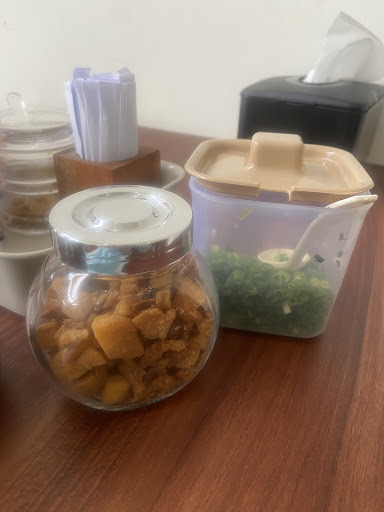 Bahas rasa standar sih, yg perlu di apresiasi di meja disediain condiments lengkap banget, saos saosan aja mereka sediain dua jenis (mangga dan belibis). Ada daun bawang sama gorengan babi juga. Tekstur mi karet nya bagiku juga "kurang karet" alias tidak se kenyal restoran bakmi karet ternama (patokan aku Bakmi Karet Krekot di Samanhudi). Tp bagiku ini udh cukup enak sih kalo lg mau makan bakmi nonhalal di daerah alam sutera.
