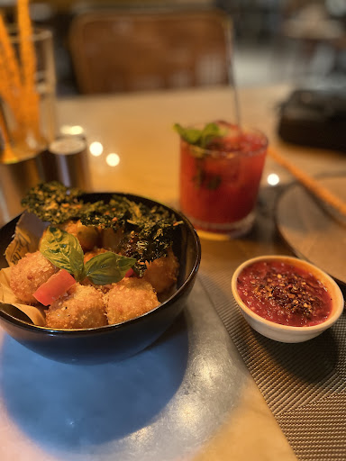The service was great when we arrived; friendly staff, smiles all around. We ordered Mushroom Cheese Balls, Spicy Wagyu Meatball pizza, Cotella Pollo Torinese, and Watermelon Strawberry Cooler.