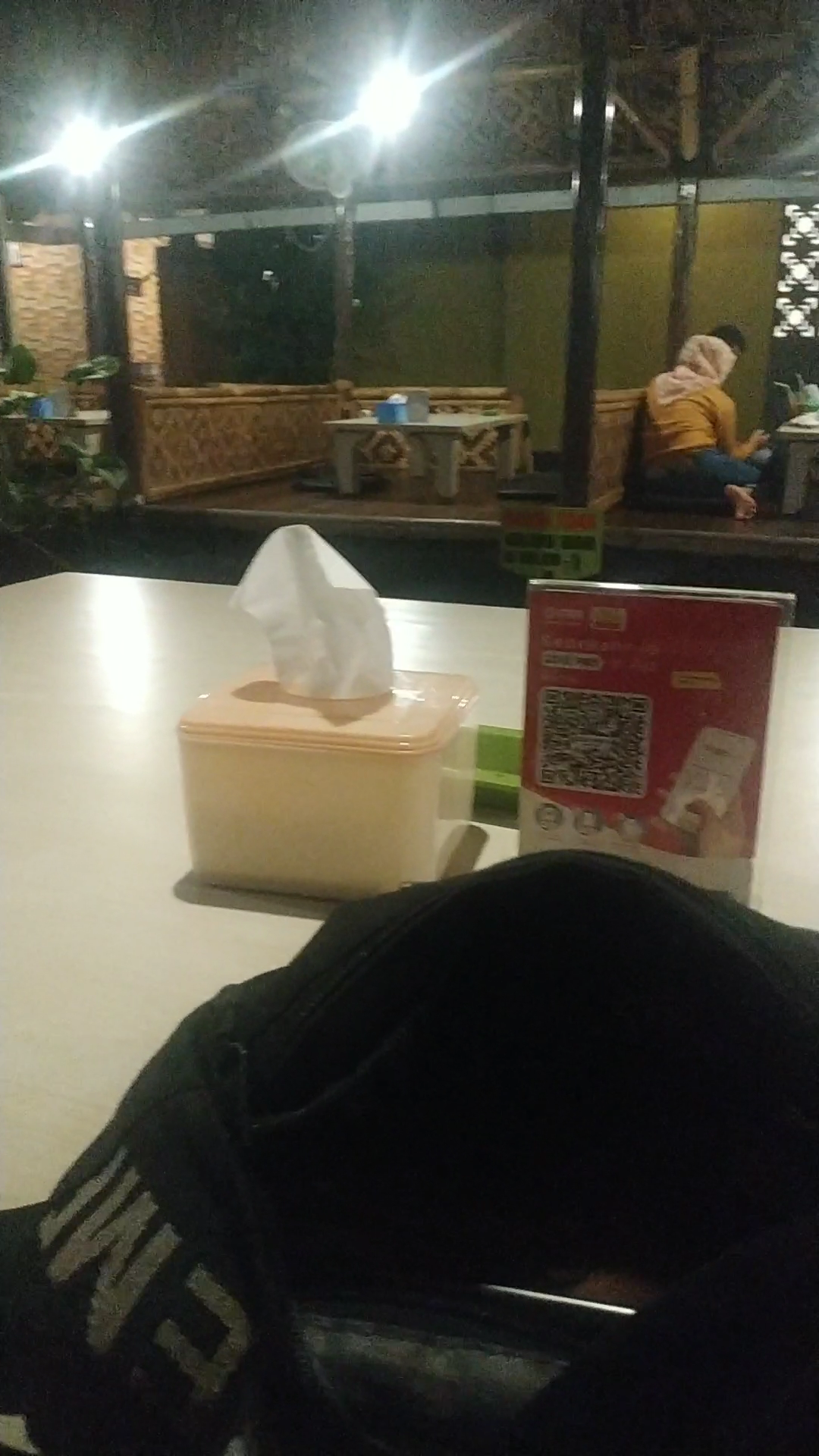 ⢠Untuk tempat dan suasannya good. Ala-ala makan di saung kampung gitu jadi bikin nostalgia. Ada area VIP (buat acara nikahan juga bisa) dan regulernya. Kebersihan standar lah ya, soalnya ini juga ada pengaruh dari perilaku konsumen (kalo konsumennya baik pasti dia juga tau etika dalam makan dong). Contoh, ada sampah tisu ya dipungut lalu buang ke tempat sampah bukan nunggu pelayan dulu baru dibersihkanš¤. Kemarin pas makan juga salfok, ada anak kecil buang tisu ke kolam dan otomatis ikan langsung makan dong (padahal, ada tulisan jelas dilarang buang apapun ke kolam). Kalo udah selesai makan ya minimal bantal-bantal dudukannya rapihin lagi gitu seperti semula, kan meringankan beban pelayan juga. Kalo ada kerja sama yang baik antar pelayan dan konsumen pasti jadi nyaman untuk semuanya kok.