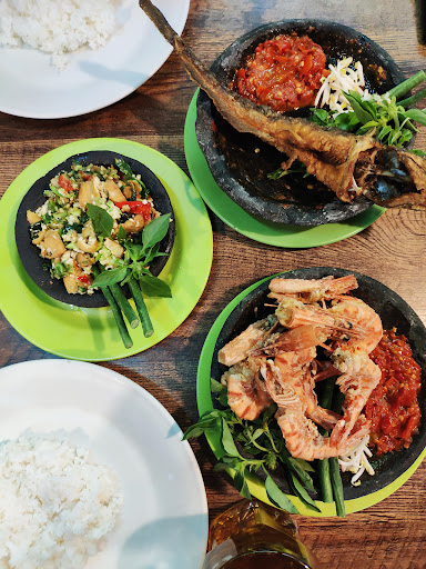 environtment = the theme pretty good in idea... as i said... idea... ethnical and wooden tables with bad tv channels and insufficient fans, so if you dine in around 14.00 expect to waste tissue for just wiping your sweat mosquito are common there, i wonder if they clean up regularly toilet? i even spotted a cockroach there service: a bit slow