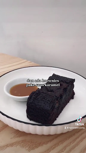 Brownies Dengan saus karamel jadi makin enak dan overly sweet kok.