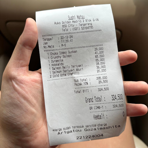Based on my wife opinion, the menus quite vary for small japanese resto around. We ordered some foods, such us spicy crunchy tempura, volcanoes, ebi tempura, a bowl of uden and ramen. They were tasted good, but a little bit pricey, but maybe that what Japanese resto average prices. For four of us, we paid more that Rp400 thousands.