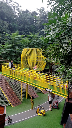 Saya datang di waktu org2 lg pd jumaatan jd ga gt rame, masih dapat parkir, first impression ketika masuk itu adalah view kali yg kotor (saran: bisa diberi penutup atau klo mau diubah jd air terjun malah jd bagus bgt bikin kesan org pertama kali datang itu okee), trus naik ke atas cari duduk penuh akhir nya duduk di lantai bawah lumayan sepi tapi jauh dari playground dan prasmanan (disini gaada masalah, saran: di tiap meja tolong diberi lilin krn banyak bgt lalet nya, saya yg nungguin anak2 main jd risih krn banyak lalet jd ga nafsu makan), sebelum makan saya solat zuhur dulu (musolah dan tempat wudhu okelah, tp tolong di musolah wanita kasih kaca minimal ada 1 gitu), trus next saya ke area makan buat ambil prasmanan (antrian nya puanjangg bgt dan yg saya perhatikan penyebab nya itu kasir nya lama dan cuma ada 1, saran: boleh lah kasir nya dibikin 3 gitu biar cepet dan tolong staff dibagian prasmanan nya lebih perhatikan menu yg udh habis tolong segera di refill, alasan nya yg saya dengar ketika salah satu lauk habis adalah yg masak lagi soljum, ya minimal ada 2 lah juru masak wanita nya supaya klo lg soljum ada cadangan juru masak), next saya beli kopi dibagian minuman (gaada masalah, tp saya liat2 beli tiket main sepertinya disitu juga, klo dipikir2 harus nya tempat beli tiket main itu dipisah jgn jd satu seperti itu), trus saya kembali ke meja di lantai bawah nya (terasa agak jauh ya krn bawa makanan yg berat), dan ketika saya mau mulai makan saya kepikiran mau cuci tangan dulu tapi saya ga liat ada wastafel (cmiiw, emg gaada atau saya kurang jeli cari nya) alhasil mau gamau saya makan ikan pake sendok dan garpu, utk rasa makanan nya sendiri overall oke not bad, and nothing's special, kopi nya juga oke krn saya beli yg di stand kopi jd bukan yg dipajang di pendingin dkt kasir, utk harga makanan dan minuman juga worth it sekali menurut saya, kopi cmn 15k, klo utk area bermain saya ga bisa review krn personally adik saya yg main dan dia happy2 aja sementara saya duduk2 aja di meja saya, oh iya utk yg di lantai bawah lebih enak lebih bersih dan ga gt gerah krn ada angin yg lumayan kenceng sampe struk pembelian pd terbang semua hehe cmn ya view nya pohon gabisa liat playground nya, last utk parkir (saran: lahan parkir luasin lagi, klo bisa pake palang otomatis / manual karcis gpp deh buat gate nya, krn ketika saya mau keluar itu dimintain uang 10k sm kang parkir nya awalnya saya kasih 5k kata dia 10k tarif nya, hm perasaan gaada tulisan tarif parkir kok tiba2 dipalakin, but it's not a big problem for me krn saya dpt parkir di dlm jd yasudahlah) semakin saya menuju keluar wahh daebak parkir nya sampe jln raya klo dipikir2 bisa macet nih blom lagi akses keluar masuk nya kecil trus klo keluar dari situ belok nya ke kiri wah haluan mobil udh pasti ga dapet jd harus mundur dulu, eh ada kang parkir lg di luar, lanjut aja saya gasss kan udh bayar parkir di dlm masa di luar dimintain lg, sekian kurang lebih dari saya semoga dibaca oleh pihak TNGS dan bisa jadi masukan yg sifatnya membangun utk ke depan nya. klo ditanya saya akan datang lagi? ya saya akan datang lagi krn adik saya senang main disana, tp tidak dlm waktu dekat, nanti tunggu udh banyak perubahan, dan apabila ketika saya datang kembali sudah banyak perubahan yg lebih baik maka saya akan mengulas kembali disini...