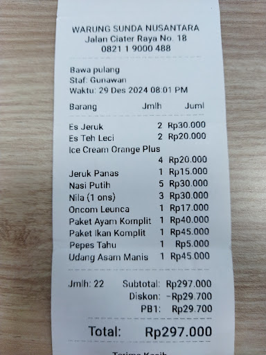 Overall: Makanan enak enak semua, ga ada yg mengecewakan. Cuma sambal di saya kurang pedas. Tetap enak dimakan sampe habis ga bersisa. Tempatnya bersih, ga terlalu luas tapi saya suka karena bersih dan rapi. Ada yang nyanyi juga.