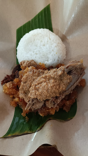 It's have a park for about 8 to 9 cars, the food cheap n has quick service...not too sweet,not too salty...its dry than usual n have a tiny little bit of"blondo"(a kind of sauce on top of gudeg)...a lot of condiments snack,a little kind of drink(tea and orange,hot or ice,milo, no ice cream)... there is children play (1 kind, a swing)...the toilet is so-so...I usually take...