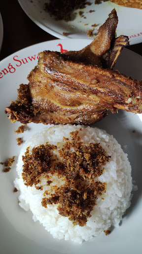 Bebek gurih, potongan besar, gak amis, daging tebel dan empuk. Sambel item enak buat yg suka nuansa manis, secara pribadi lebih suka sambel bawang. Sambel bawang pedesnya pas secara universal, ga nyelekit, ga kurang pedes, bawang garem minyak bebek berasa, ga asal cabe. Nasi...karakternya agak lembek, tapi gak benyek, ati2 bikin efek lebih cepat kenyang dan cepet laper lagi.. Tempatnya lumayan sejuk walaupun di pinggir jalan. Ada space yg bisa dibooking untuk kumpul2 arisan atau meeting di belakang. Ke sini buat yg cari makan aja, kalau cari view di sini kurang. Pelayanan direview lagi kapan2, krn saat ini acaranya arisan komunitas yg template nya datang tinggal ambil makan, bukan yg pesen terus...