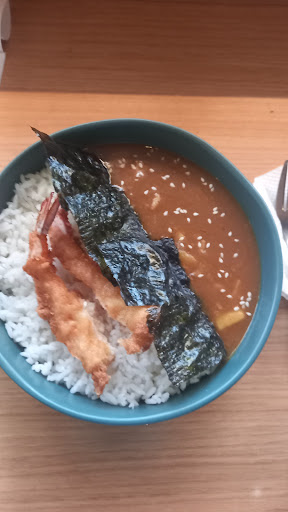 Makanan pesen nasi kare tempura, karenya terlalu cair, rasanya standar, dan tempuranya juga kicil. Minuman pesen, hot tea chamomile non caffeine. Teh disajikan dengan teko, dan gelas kecil yg lucu, rasanya lumayan, dikasih 2 bungkus kecil gula juga.