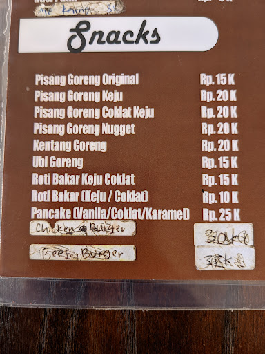 Read moreKrn kesana di masa pandemi, di depan cafe ditulis "KAWASAN WAJIB MENGGUNAKAN MASKER". Tapi waitersnya ga pake masker 😩 Pas ditegur cuma blg "tdk ada masker". Lah pie iki 😩 pisang gorengnya msh muda kyknya, bergetah soalnya. Trs ayam gepreknya asin banget, byk loh resep sambel dan ayam geprek di internet, trs nasi goreng mnt ga pake ayam dan di ganti bakso. Tp kira² bakso cuma ada 4 iris kecil, astagaaaa 😖😖😖 Tapi tempatnya nyaman, ga berisik dan tenang banget, lalu minumannya enak kok, PANCAKENYA ENAK, NASI PUTIHNYA ENAK, hrg jg affordable. Semoga next kesana sudah ada menu indomie 😁 Maaf review jujur biar usahanya makin jaya dan bisa...