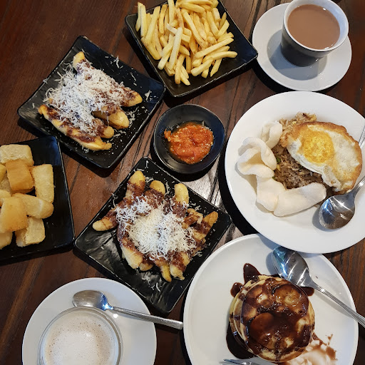 Kopinya enak, well standart cafe lah UBI GORENG ENAK, clearly singkongnya direbus sampai empuk trus digoreng, luarnya crispy, dalamnya lumer PISANG GORENGNYA ENAK, pakai pisang sepatu/kepok SAMBALNYA ENAK, lumayan pedas, pas banget untuk ubi dan pisangnya HIGHLY RECOMENDED!!!