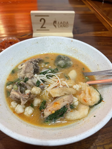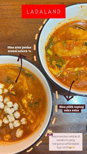 Tempat parkirnya bisa dipinggir gitu klo bawa mobil, kalo bawa motor bisa di depan ladalandnya.. tempat duduknya juga lumayan banyak dan ga sempit, ga sumpek juga pdhl masak di dalem juga. Cuman klo lgi masak yg pedes bgt jdi agak bersin-bersin aja 😬😬
