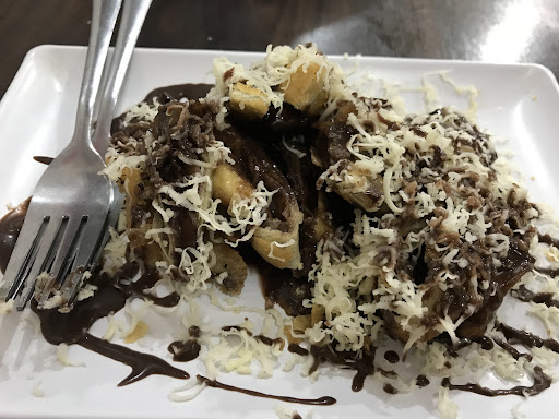 Read moreThe place is small and quite hard to find because it’s located in the corner of Tiara Toserba parking area. It’s a banana inside dumpling skin, better be eaten while is hot because still crunchy. The banana is tasteless because they are only put a little inside the dumpling skin. There are a few choices of taste. I ordered with melted chocolate and shreded cheese. The price is quite cheap. The food is suitable...