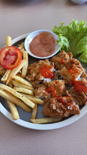 Although the place is a bit indented, it is cool, comfortable and relaxing. Even though it's relaxed the service is fast. The scenery is beautiful, you can see directly to Lake Toba. Hopefully there are no buildings in front of it . Fish...
