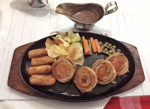 Read moreLegendary steak in Surabaya that you should visit if: (1) you're rolling in cash, (2) you have never tried eating an Indonesian-style steak. An Indonesian-style steak is basically a hot plate with mushroom sauce, carrots, and longbean - serving as side dishes to a well done steak. If you have ever eaten a steak at a restaurant called Platinum, that is exactly what you're getting; except Boncafé's steak meat is of higher quality, and the fries are far superior in taste.