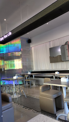 Carrying the moon space concept for the interior makes this cafe give the impression of the future with futuristic accents inside