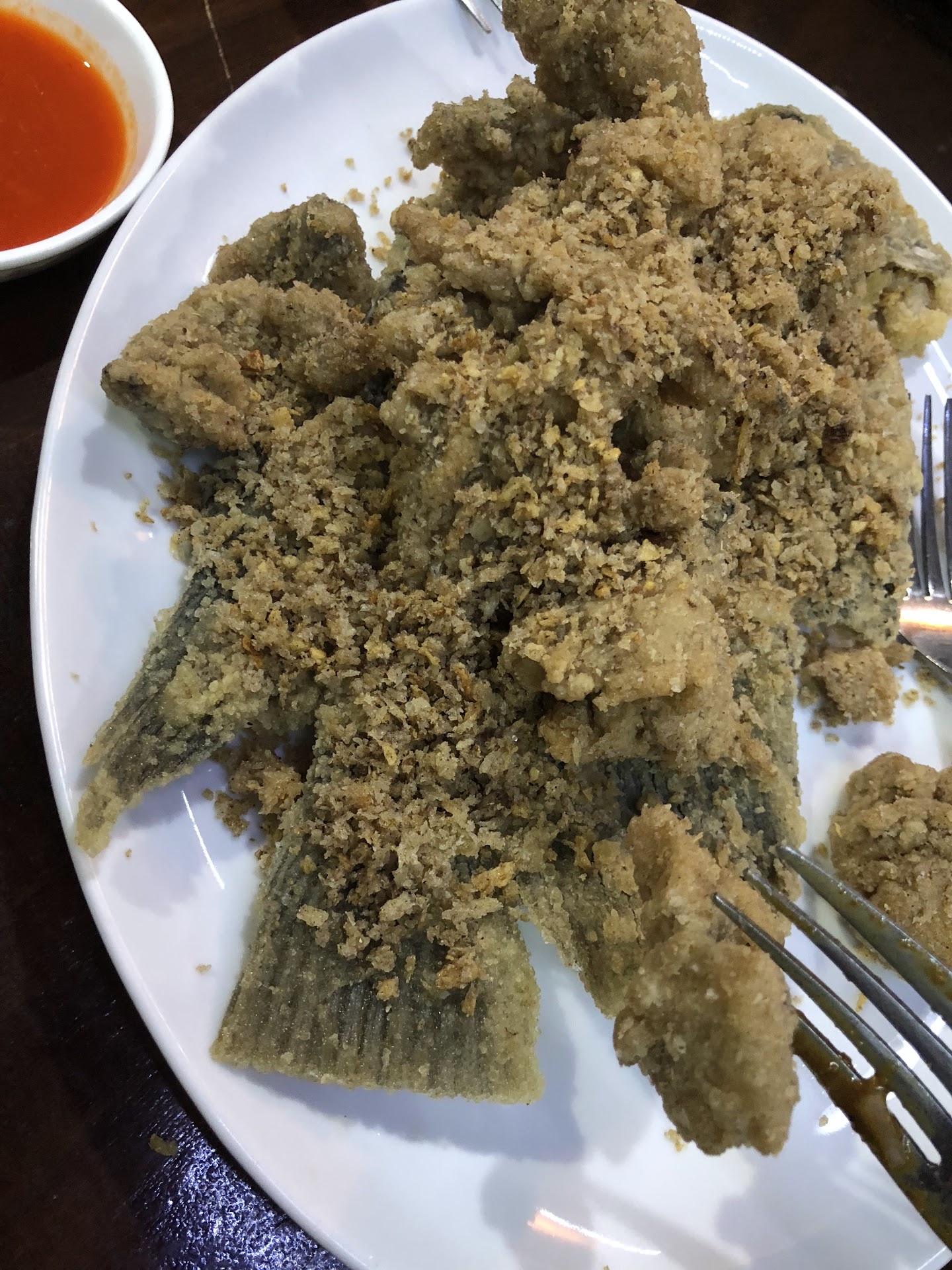 Ordered Sia Mian Fen, salty fried shrimps, salty fried gurami, Mongolian pepper beef, ham bacon fried rice, gravy veggies. Those are the favorite menu here.