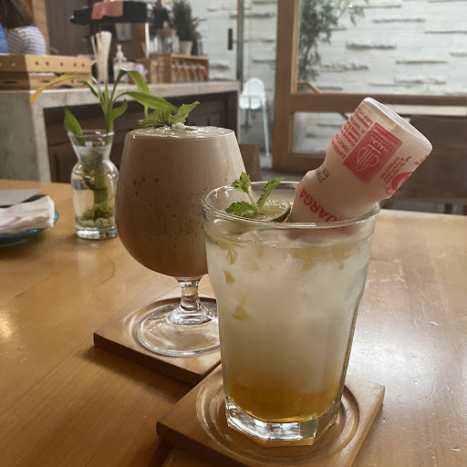 Read moreYou won't see this place easily from the road. It'a a cafe at the 3rd floor of a place that sells piano and also piano courses. There's a small sign in front of the building. The ambience is great and cozy, lots of natural light, and I love the interior design. The waiters are friendly and professional. The food and drinks tastes great. I ordered salmon teriyaki, the salmon was fresh. I personally recommend that you try the salmon menu. The price is reasonable, not that pricy considering the area. The food prices ranges about 50-70k and for the drinks ranges...