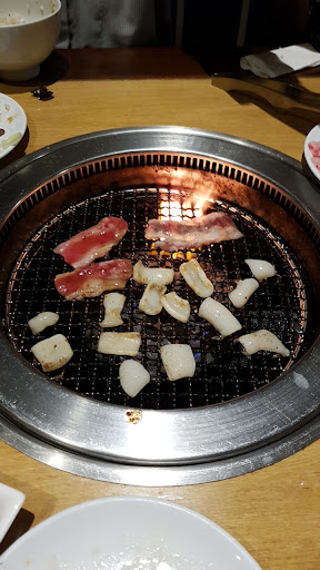 Read moreI went here with my friends and decided to order ala carte rather than AYCE. I am not a meat eater so i ordered 3 portions squid instead. Meanwhile my friends ordered 3 plates of different meats, 2-3 portions each. I love their squid, chewy and not smelly. My friends forced me to eat the meats they ordered, i took it and it tastes really good. The thickness was enough, not too thick, the texture was great. For non meat eater like me (i dont eat meat bcs of the smell), it tastes really great without annoying smell like the usual meat. The sauce was great also, especially if i put the dried pepper on it. I love their ceramic utensils. The salad was fresh and also the edamame. I ordered a hot ocha, taste just okay. The waitress was helpful even they didn't smile a lot...