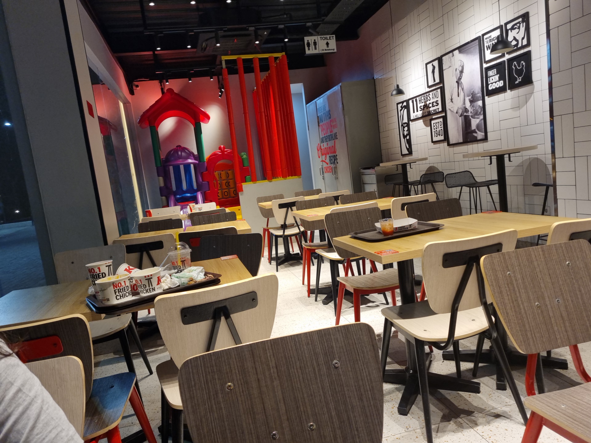 Read morePertahankan rasa otentik crispy chicken, gurih dan juicy, spaghetti jangan pelit saus nya, bagian kasir harus pandai memberikan pilihan combo agar pembeli tidak bingung, tambah bagian bersih2 karena ketika saya ke sana bekas makan pelanggan masih banyak di meja, pantai pun kotor , kasir cuma satu keteteran, bagian produksi jg keteteran, pelanggan antri panjang, kasir cafe depan harusnya standby, dan tidak meninggalkan kasir terlalu lama, donat tidak enak, pukis biasa, tempat bermain anak kecil sekali harusnya kalau berani buka daerah merr harus berani invest arena mainan anak yg lebih besar karena pengunjung rata2 membawa anak2 kecil. Penataan meja kursi kurang begitu nyaman, sempit berdesakan yg di daerah deket arena main anak, AC cukup nyaman , tolong di kasi catatan di meja yg isi 6 orang, hanya untuk pengunjung berisi 6 orang, jika tamu cm 2 silahkan duduk di meja yg bangku 4. Karena tidak semua org mau berbagi meja makan...