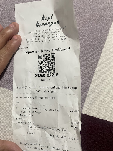 Kopi Kenangan Dharmahusada delivers the usual Kopi Kenangan experience you would expect. The atmosphere, menu, and quality of coffee are consistent with other Kopi Kenangan outlets, which is always a positive aspect. However, there are a few factors that take away from the overall experience. Located alongside other shops, the parking space at this location is quite limited. Additionally, unlike some other places, parking is not free here, which may be a downside for some customers. Seating is also somewhat limited. So, if you plan on sitting down to enjoy your coffee rather than grabbing it to go, you might find yourself waiting for a table...