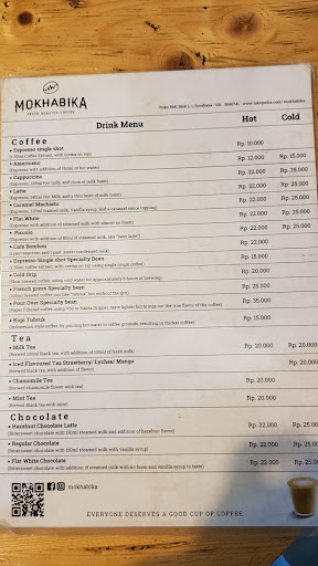 Saya sdh pernah berkunjung langsung kemari bertahun2 lalu, mcb kopi tubruk (yg blend, tp lupa yg mana). Wkt itu, saya sampai masuk ke dalam krn ijin ke toilet, dan memotret utk google maps mesin roaster dan koleksi biji kopinya. Saya jg bertemu dgn pengunjung setia yg dtg utk borong.... dan mencatat sikap barista yg begitu bangga dgn tempatnya bekerja😊. Saya tdk terlalu cocok dgn si kopi blend, tp memutuskan memberi bintang 4 dlm ulasan saya. Saya tau persis, Mokhabika serius soal kopinya, jd saya menggunakan istilah cocok/tdk cocok, bkn enak/tdk enak. Keberadaan pengunjung setia kan sdh membuktikan sendiri. Lagipula, kopi blend cocok dgn selera itu sulit dicari, menurut saya. Koleksi biji kopinya banyak, dan kalau anda mampir k official storenya d Tokopedia, Mokhabika memberikan keterangan lengkap, mulai dr asal biji kopi, after taste, sampai cara seduh terbaik. Tempatnya lumayan nyaman, dan toilet bersih.