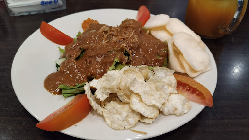 Read moretempatnya nyaman dan luas, ada pilihan tempat di lantai 2 jika ingin menggunakan untuk acara yang privasinya lebih terjaga. untuk makanannya sendiri lebih banyak makanan indonesia dengan berbagai macam olahan sayur, daging, ikan dan ayam. utnuk minumannya pun juga masih dengan khas indonesia jadi tidak ada yang terlalu istimewa. selama bulan ramadhan, ada takjil yang diberikan berupa es blewah yang menurut saya terlalu manis.