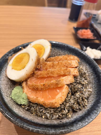 🍣Salmon Don Buat penggemar salmon, ini hidden gem! Irisan salmon-nya segar digoreng tapi masih tetep fresh, disajikan di atas nasi hangat dengan saus khas dan taburan nori serta wijen. Porsinya pas, dan rasa ikannya benar-benar fresh. Nasi shari-nya juga dibumbui dengan baik. Skor: 9/10