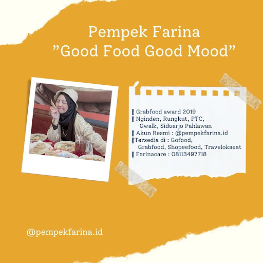 Read morePempek Farina merupakan sajian kuliner khas Palembang namun dinikmati oleh masyarakat Surabaya, dengan rasa yg telah disesuaikan. Cabangnya pun sudah lebih dr 20 dan beberapa sudah ada di luar Surabaya, seperti di Makasar dan Bali.