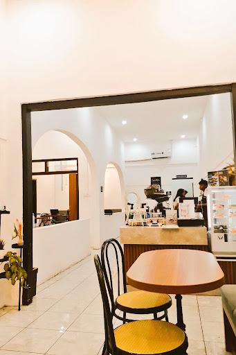 Read moreUdah lama penasaran banget sama tempat ini karna deket banget sama kampusku akhirnya baru kesampaian nyobain kesini. Pas kesini ngga terlalu rame dan banyak yang nugas, lokasi nya strategis dekat dengan ayam geprek joder ka dhani sama naspad uda wandi. Cafe nya lucu, ngga begitu luas tapi nyaman banget. Pas dateng lgsg disambut sama barista nya. Banyak banget food & beverages nya & dessert nya sampe bingung pesen apa haha. Akhirnya aku pesen poured tiramisu, creamy matcha, panacotta. Totalnya 97rb. Ada ppn nya 3% ya guis. Pembayarannya bisa pake cash dan qris. Di cafe ini open kitchen jd bs liat proses masak2nya gitu deh. Penyajiannya cepat, aku paling suka sama panacotta nya rasanya ngga too much sweet dan manis nya masih bisa dinikmati. Untuk poured tiramisu nya jujur aku kurang suka karna kayak kurang soft aja... Untuk minuman creamy matcha nya kirain bener2 'creamy' jadi ada manisnya dikit ternyata bener bener pahit banget wkwk padahal udah diaduk tapi tetep pahit so it's ok lah. Oiya dikasih free air putih ya. Ambience nya oke banget, cocok buat nugas dengan harga yang affordable. Worth to try, kapan kapan balik kesini lagi hihi. Parkirnya bayar 2rb ya nanti bakal dibantu...