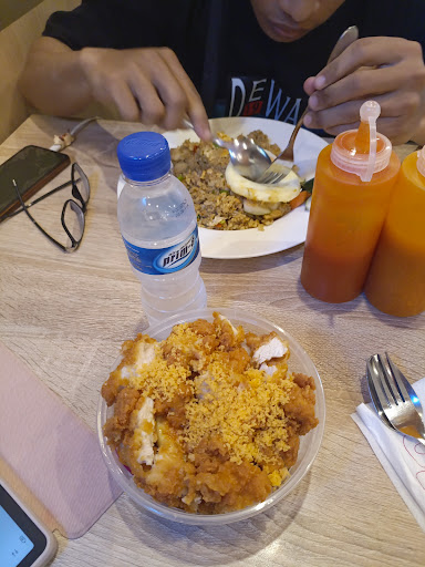 ย ย ย Read morePesan nasi goreng spesial sama express bowl ayam mentega nya, jujur aja nasgornya enak tapi bukan yg wah. Klo org lain pasti ad yg ngerasa sayang beli ini krn harga 30 an rasanya b aja, mirip apa yg di pinggir jalan. Tapi topingnya banyak di nasgor ini. Terus ayam mentega nya enak, gurih manis mentega bumbunya kerasa banget, ayamnya juga full daging, ayam nya ayam krispi kecil kecil gt trs tepung baluran nya jg ga eneg sama sekali, pokoknya ngebalance bumbu mentega nya ini. Trs dapet telor ceplok tapi bukan yg mateng banget msh oren kuningnya, saya ga cobain krn gasuka jd kurang tau rasanya gmn. Untuk air putih 10k dpt yg 250ml keknya, kirain yg 600ml pdhl pas beli di gc ukurannya 600ml dg harga segitu. Es teh manis nya pas ga terlalu manis. Tempatnya bagus, pelayanannya bagus. Menurut saya baru ini Solaria karyawannya ga judes judes pas disini doang deh, nyoba di tp sama gc pada ngeselin smua mukanya kek org...