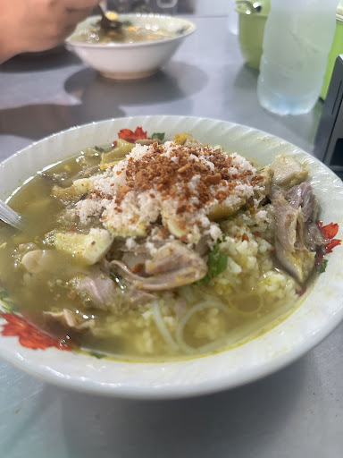 Soto ayam yang lumayan enak di daerah dharmahusada surabaya, kuahnya tipe yang sedikit bening gurih gitu, ga terlalu asin juga ga terlalu hambar jadi pas gurih gitu tapi kalo orang yang suka asin pasti bilang kurang asin, tapi kalo di tambah koya yang banyak jadi eeenaaaaak banget,cuma kurang jeruk nipis tidak tersedia di meja, condimen di meja lumayan lengkap sih karna Ada kecap asin, kecap manis,Dan koya jadi bisa nambah koya sepuasnya, Sambel nya juga enak, yang lebih bikin kaget tuh bisa request pakek kulit atau ga pakek kulit, porsinya juga lumayan, harganya relatif masih bisa di jangkau karna 17ribu perporsi, kerupuk blek juga masih 500 rupiah, untuk minumannya Ada teh sosro, aqua, es teh, atau teh panas,tempatnya walaupun kecil tapi tetep bersih, Dan rapi walaupun di pinggir jalan tetep bersih ga Ada debu di meja nya, lantainya juga bersih mengkilap gitu, overall puas deh makan di sini, yang belum coba dine in cobain deh...
