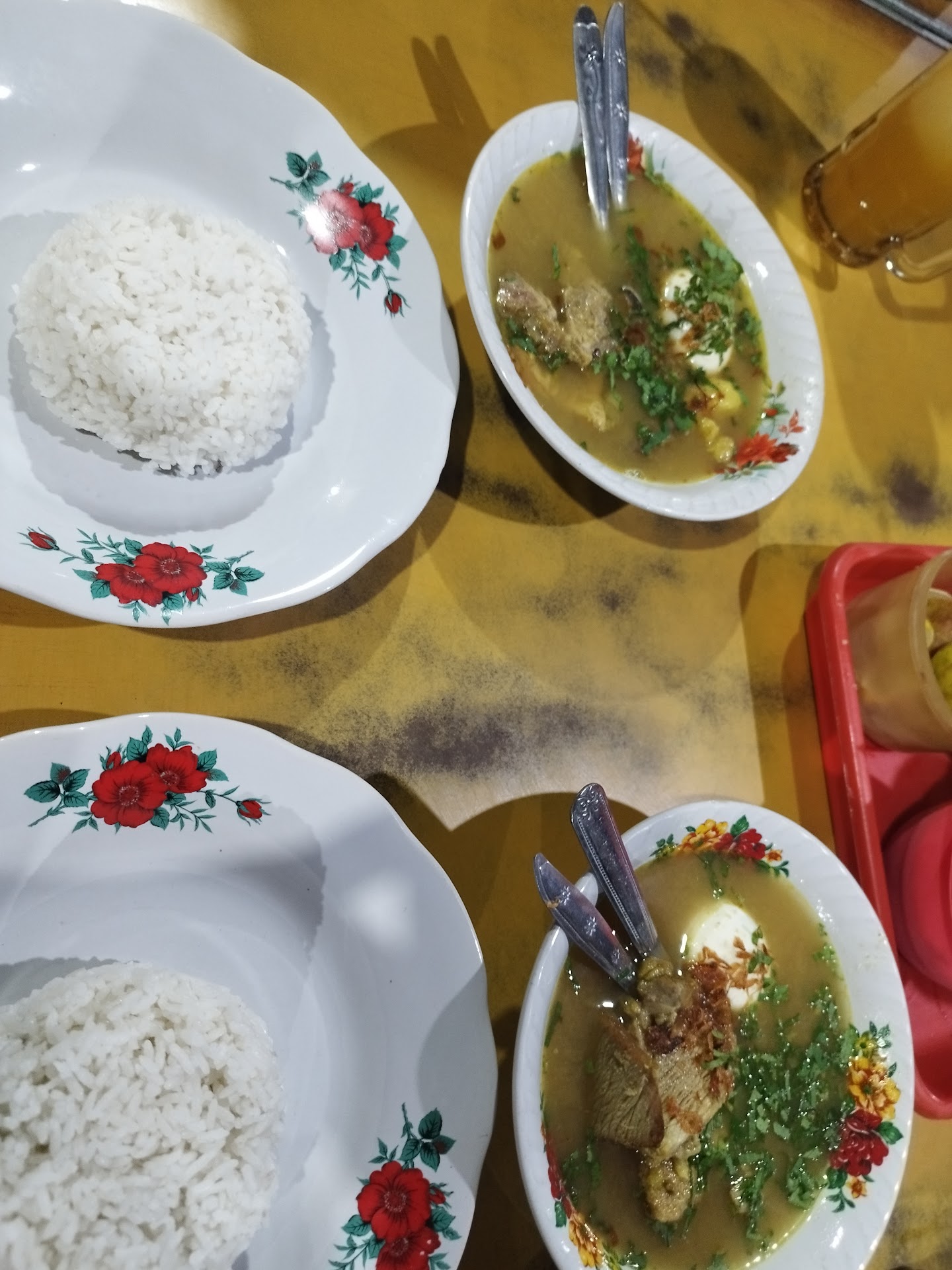 Read moreTerakhir kesini sekitar tahun 2017, Kenapa sekarang rasanya gak seenak dulu ya? Rasa kuah soto agak hambar gitu. Kalo pesen soto campur, jerohannya lebih banyak daripada dagingnya.jadi bagi yang gak suka jerohan atau lagi diet dan menghindari makan jerohan lebih baik bilang dan pesen soto daging tok aja. Rasa tehnya kurang manis,tapi bagi saya yang memang lagi menghindari gula it's OK Cuma rasa tehnya kurang terasa sih,entah komposisi airnya waktu menyeduh teh yang kebanyakan atau gimana,yang jelas masih lebih enak tehnya warkop. Untuk parkir,lumayan luas baik untuk motor maupun mobil. Juru parkirnya saya nilai bintang 5 atas keramahannya dan ke gercepannya. Kalo yang gak pengen menu soto,disamping rumah makan ini ada...
