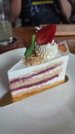 We got complimentary strawberry cake. The jam has lots of strawberries bits. Quiet sweet too.