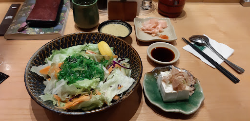 Been here several times and my tummy always ended up being very happy with every dishes i tried. Even I enjoyed the ginger so much haha. But one thing i never missed is their wakame, man i was underestimating this weird looking green thing that turned out to be one of my favorite dish here. It's simple and refreshing. And i never thought those soy sauces, the salty and the sweet one will suit like almost every dishes that i tried. To be honest, at first i wasn't really interested at trying japanese cuisines. Because i dont believe in raw things hehe, but i finally tried it out of curiosity and everthings worth the calories, the money, the time i spent to eat all those things. Aaanndd i actually really enjoy the open kitchen. So, 5 stars for the taste, the service, and the atmosphere eventho they got pretty busy around dinner time especially at the...