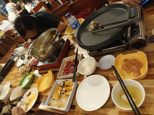 The food was mediocre, the soup was quite tastless but the actual like food was okay. The service however was bad. The bottles of sauces were running low and the waitresses were rude and careless. They always showed an angry expression, no smiles nothing. We tried to order rice and drinks but no one paid attention to us. Even when we ordered they got it wrong. The careless part was when they opened the lid for us and the soup splattered over my mom's hands. Just get better...