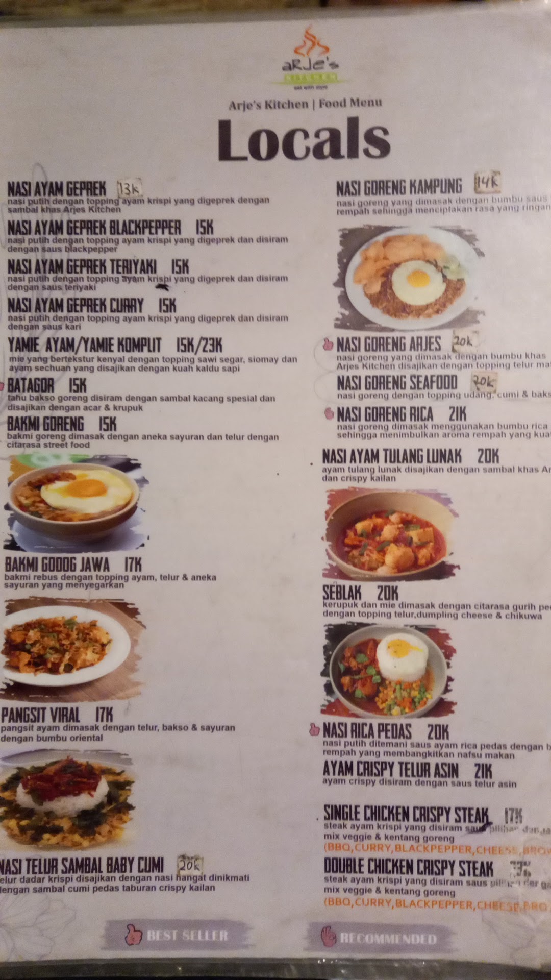 Arje’s Kitchen has a strategic place near Universitas Sebelas Maret which is easy to find and has much access to go there. There are many facilities that costumer can use such as toilets, prayer rooms, etc. The menu is complete and delicious, you can try many foods from appetizer until dessert. If you are bored with the Indonesian menu, Arje’s Kitchen provides menus from Korea, Western, Japan with various flavors. The place is comfortable, when I go there with my friends, we can choose a seat on the first or second floor. Since the place is near the university, many students go there to eat, chat, study, or others. I guess it is better if Arje’s Kitchen provides an indoor parking area, so the customer doesn’t worry if rains...