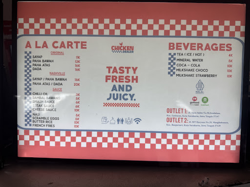 Haven't try their first store at K.H. Agus Salim street/Laweyan (which is smaller), this one is their branch but a lot bigger than the first one. Using a american retro theme in its interior seems to match what they sell . Nice ones for meal package (without drink) started from IDR 22K-29K, nice dishes (for their spices), burger same as average i guess but their spicy chicken tastes so good if u eat this with french fries (I hope they got package with potato wedges because it's tastes better than with rice imo, their rice tastes sweeter than the spices that got hint of sweet taste on it's chilli flakes). Worth for price, enough for heavy meal (espc. their rice menu). Reallygood to bring ur gf or group of friends here. My detailed review down below: