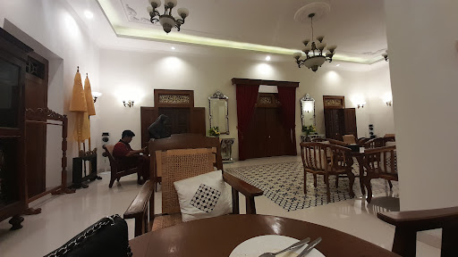 Read moretempat nyaman dan suasananya "Solo banget", furnitur dan dekorasi yang dipakai erat dengan budaya Jawa-- harmoni dengan lokasinya yang berada di dalam kampung di sekitaran kraton Solo. Interiornya antik, di satu sisi masih kelihatan kalau bangunan lama, tapi di sisi lain karena perawatan jadi juga kelihatan kaya rumah "warga" pada umumnya. Musala dan kamar mandi bersih, walaupun kalau malam sedikit creepy karena letaknya yang di dalam ruang terpisah dekat gamelan dan panggung teater hehe.