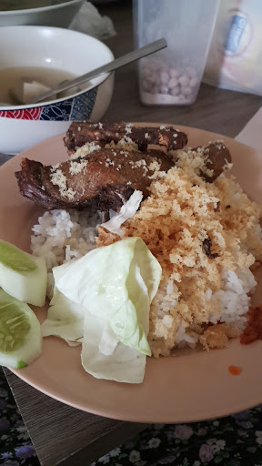 Read moreGak sengaja mampir tempat makan ini waktu main ke daerah Benteng Betawi. Habis di drop kawan sore2 jam 3an dr urusan kantor utk naik Bis ke arah Tol Veteran Bintaro, kata kawan saya di tempat saya nunggu Bis di sebrang bnyk pilihan tempat makan, semacam Pujasera, ada Pangsit, Roti Bakar, Sate, & Bebek. Akhirnya saya lbh tertarik ingin makan Bebek. Bangunannya semi permanen dgn bahan dasar bambu. Saya tanya makanan yg jd favorit disini apa? Kata Mas di kasir Nasgor Bebek krn tempat lain hampir/tdk ada yg menawarkan menu ini. Saya pesan lah itu NasGorBek suwir, krn ada jg NasGorBek potong. Sambil menunggu, saya lihat di dinding Rumah Makan Bebek Royal terpampang foto publik figur sebuah talk show yg dulu berambut gimbal skrg plontos usia 50an serta komennya yg katanya Sumpah Enak !!! Menu2 olahan bebek yg lain seperti Bebek bakar, kremes, Bihun Goreng Bebek akan saya ceritakan begitu sy ada kesempatan mampir lg ke...