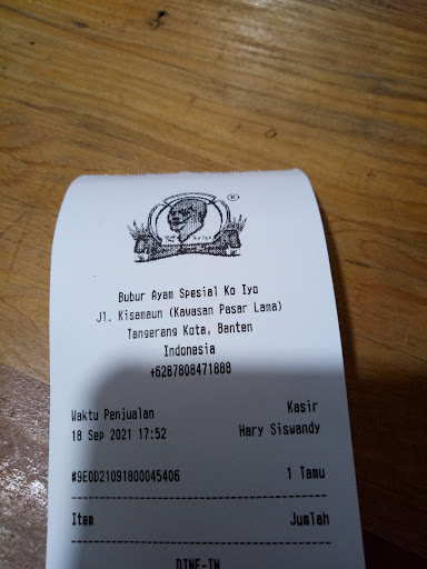 Read moreBubur Ayam Ko Iyo adalah varian bubur ayam cina saya menyebutnya. Khas buburnya adalah putih polos, tidak diberi kuah, tanpa minyak kari atau semacamnya, tanpa kecap, ya polos aja gitu. Paling sedikit diberi minyak wijen untuk memberikan aroma wangi sedap. Toping ayamnya pun polos guys. Jadi tetelan ayam mentah dimasukkan kedalam bubur panas sambil diaduk perlahan diatas api sedang sampai matang. Toping optional lainnya biasanya adalah ati dan ampela yang telah ditumis dengan sedikit nyemek. Sebagai campuran pelengkap diberi potongan cakwe, tongcai (lobak asin) dan seledri. That's it. O iya, tongcai disini rada aneh, bukan asin tapi manis. Gak banget dah buat saya. Bubur cina dahulu banyak ditemukan di seputar Tangerang. Hampir semuanya legend karena diwariskan turun temurun. Yang juga terkenal namun sayang kurang mampu berkembang adalah bubur 55. Dahulu bertempat di pasar anyar, pindah ke depan pegadaian dan terakhir pindah lagi ke sebelah...