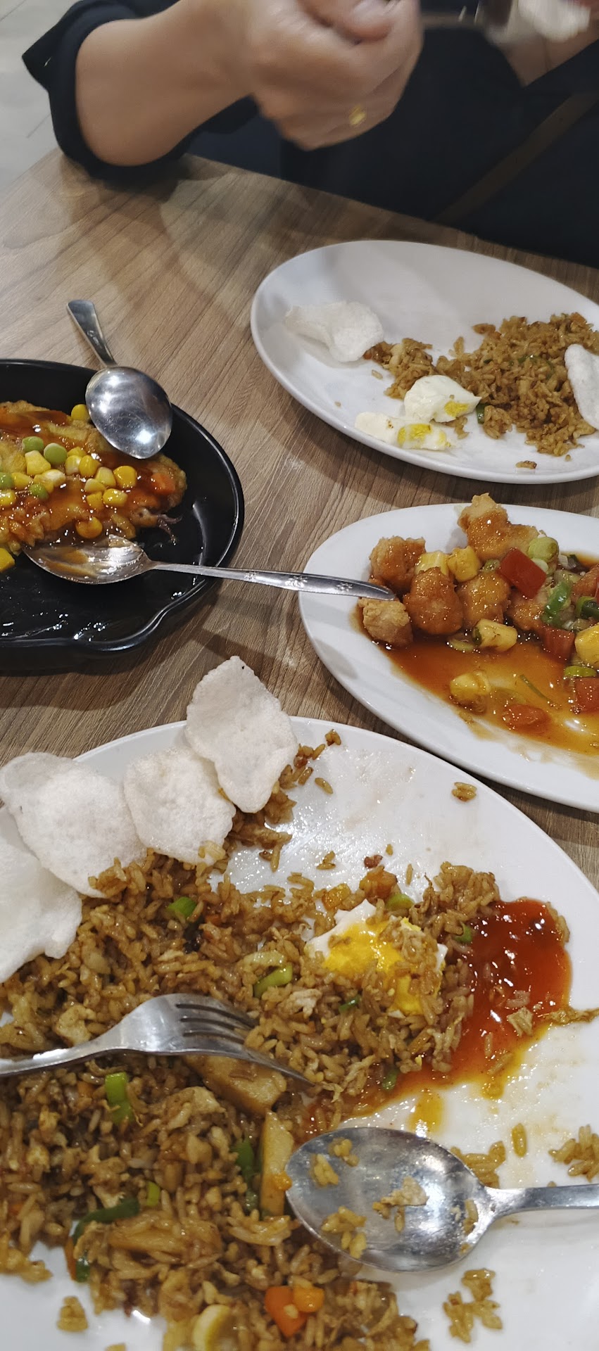 Pertama saya kecewa sekali ngajak keluarga tapi makanan nya sama masakan keluarga saya masih enakan masakan kami, termasuk masakan aku yang gak jago2 masak, why? Secara tampilan langsung membuat tercengang karena ini restoran lebih mendingan tukang nasgor pinggir jalan (GAK MENARIK, SEPERTI SENGAJA DI ACAK2 ATAU AWUR-AWUR SAAT DI SAJIIN KE PIRING TERUS TAMBAH KERUPUK DAH GITU) nasgor pinggir jalan lebih menarik dari ini weyy Rasa cuma Asin dan pait karena terlalu manis entah itu lada hitam, entah itu menu lain nya kacau wkakaka gak ada yang nyaman di mulut dan mempresentasikan nama menunya, makan berasa lama banget, mau di habisin maaf ya gak ketelen ke saya walaupun orang Jawa suka manis ini sudah nyelekit banget manisnya sampe ke pait campur asin, semua makanan yang saya cobain begini rasanya padahal saya sekeluarga pesen gak dikit, tapi semua menu gak ada yang bisa nyelametin buat review mendingan dikit. Mau gak di habisin kok sayang, sampai akhirnya beneran gak kami habisin, sepanjang saya makan saya ngomong terus ya Allah kok begini ya, saya lihat ekpresi keluarga saya pun kek males makannya. ini tolong lah ya bagian masak di benahi lagi, saya yang gak jago masak aja kalau ini masakan saya gak akan saya sajikan ke orang lain,, uasiiinnn, muaniisssss ampek puaittttttt, gak ada sambel atau cabe yang di sediain. Yaaa cukup sekali ya. Maaf lagi nyeselnya masih ada terus, ekspetasi aku yang di bintang 3 aja gak bisa terpenuhi pas makan di sini...