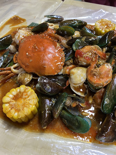 Read moreFirst impression tempatnya adem banget, recommended👍🏻 buat ajak keluarga kesini. Seafoodnya super fresh bisa lihat langsung kalo kepitingnya🦀 masih hidup-hidup. Bumbu saus padangnya juara kekentalannya bukan dari campuran tepung maizena, pure dari bumbu-bumbunya, bumbunya juga gak pelit sisanya sampe bisa dibawa pulang😂. Selain seafood nyoba juga nasi goreng ayam request pedes POoooL! l🔥 Nagih banget nasi gorengnya udah order 2x. Disana juga bisa FREE karokean bareng temen2 sambil nunggu makanan. Parkirannya juga luas jadi gausah khawatir. Next mau ajak pacar buat dateng...