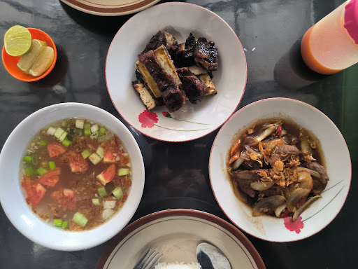 Read moreSempat skeptis sama resto ini karena ratingnya dibawah standarku, tapi dengan sepenuh hati mau cobain resto ini karena penasaran. Pas lihat menunya beragam, harganya juga affordable. Saya dan partner pesan 2 nasi putih, oseng daging, sop iga bakar dan ternyata makanannya enak. Oseng daging : dagingnya tebal dan lembut banget, tipe masakannya manis gurih, banyak bawang putih, bawang bombay dan potongan cabe menambah citarasa, comfort food Sop iga bakar : daging iganya lembut banget no effort buat lepasin dan potong dagingnya, gurih, manis, sedikit smoky, kuahnya gurih dengan isian tomat, wortel, daun bawang dan bawang goreng, enak banget dimakan pas musim hujan atau pengen makan kuah2 comforting banget. Untuk tempatnya memang sepertinya butuh renov sedikit, pelayanannya standar, dan kucing2 disana gak mengganggu. Untuk restoran ini seharusnya bisa lebih ramai dan...