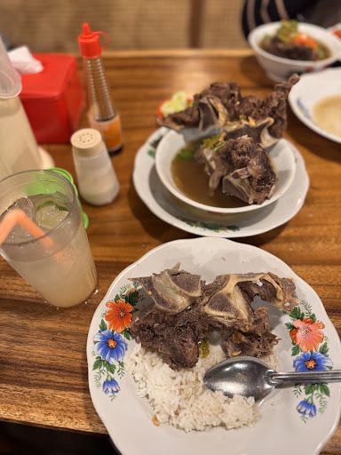 SOP BEREMAH Dapat 2 tulang besar dan dagingnya cukup banyak. Daging cukup empuk, walau ada bagian yang agak alot (tendon). Rasa kuahnya dominan asin dan kurang kompleks untuk selera saya, bahkan ada rasa cengkeh dan pala yang sedikit terlalu kuat di lidah saya. Kuah sopnya hanya hangat, tidak panas dan sedikit banget, no wonder kalau nambah kuah sop kena charge (karena hampir pasti harus tambah ini sih)
